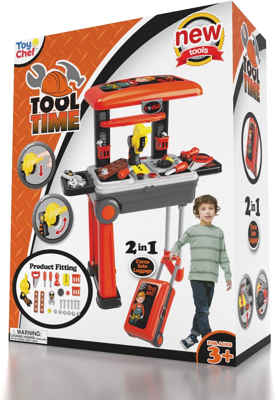 - Herramientas de Juguetes: Equipada con herramientas de juguete seguras, la maleta inspira el juego creativo, fomenta habilidades motoras y cognitivas.